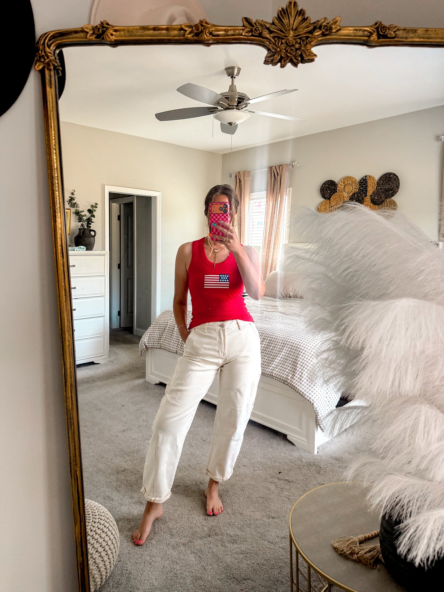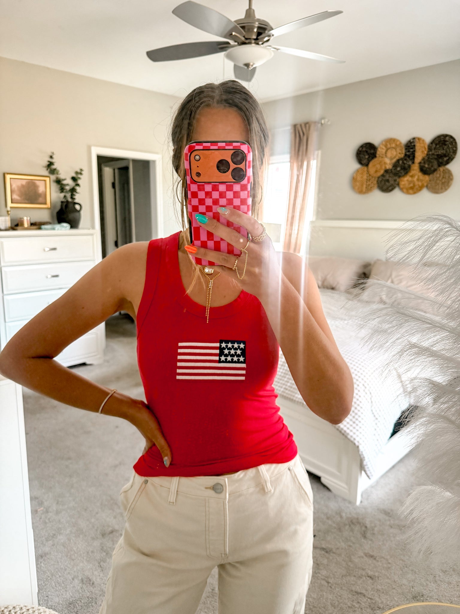 Lightweight ribbed tank featuring a classic flag design. The textured fabric offers breathable comfort perfect for warm weather wear. Versatile enough for casual outings or layering under jackets. Simple, timeless style that pairs effortlessly with any wardrobe.
